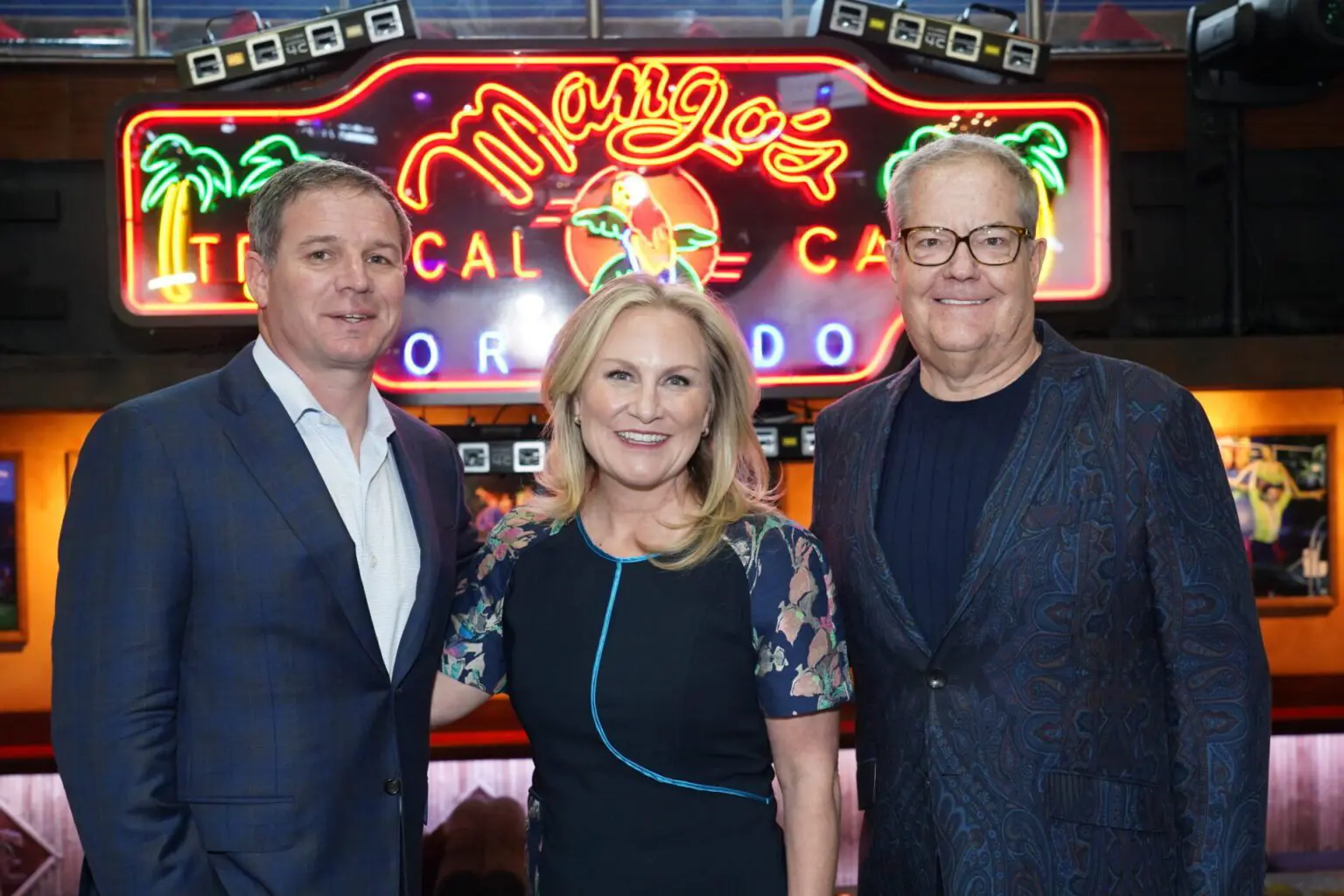 Os CEOs dos bureaus de turismo das cidades de Kissimmee e Orlando, DT Minich e Cassandra Matej, receberam o novo presidente e CEO do US Travel Association, Geoff Freeman, em um coquetel nesta quinta-feira (9).