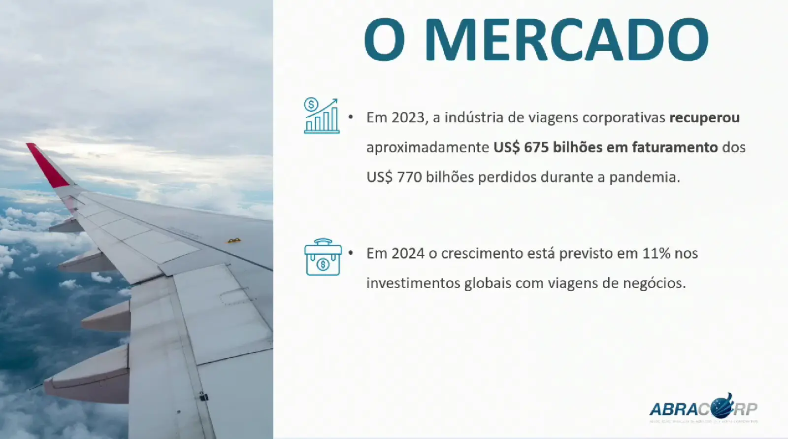 “É um prazer estar aqui para compartilhar algumas atualizações e perspectivas sobre o mercado de viagens corporativas”, começou Santos. “Estamos falando de um mercado global que, até o final de 2024, movimentará 4,8 trilhões de dólares em viagens corporativas. Nesse cenário, o Brasil ocupa a décima posição, com um volume estimado de 30 bilhões de dólares”, afirma.