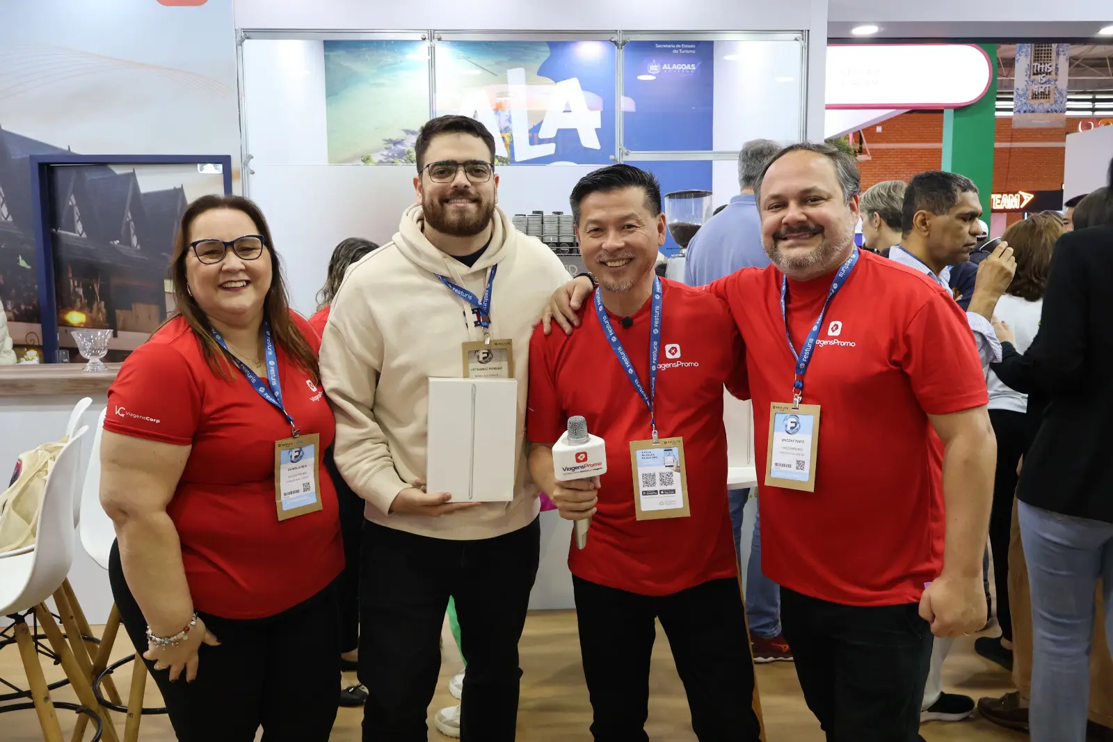 Durante a Festuris 2024, principal evento do setor turístico no Sul do Brasil, a ViagensPromo marcou presença com uma série de ações exclusivas para fortalecer seu relacionamento com agências parceiras. Em um estande movimentado e com a participação do ator Cauã Reymond, garoto-propaganda da operadora, a ViagensPromo aproveitou os três dias de feira para premiar as agências que mais se destacaram em suas últimas campanhas de incentivo de vendas, oferecendo dispositivos da Apple como iPhones, iPads e Apple Watch aos vencedores.