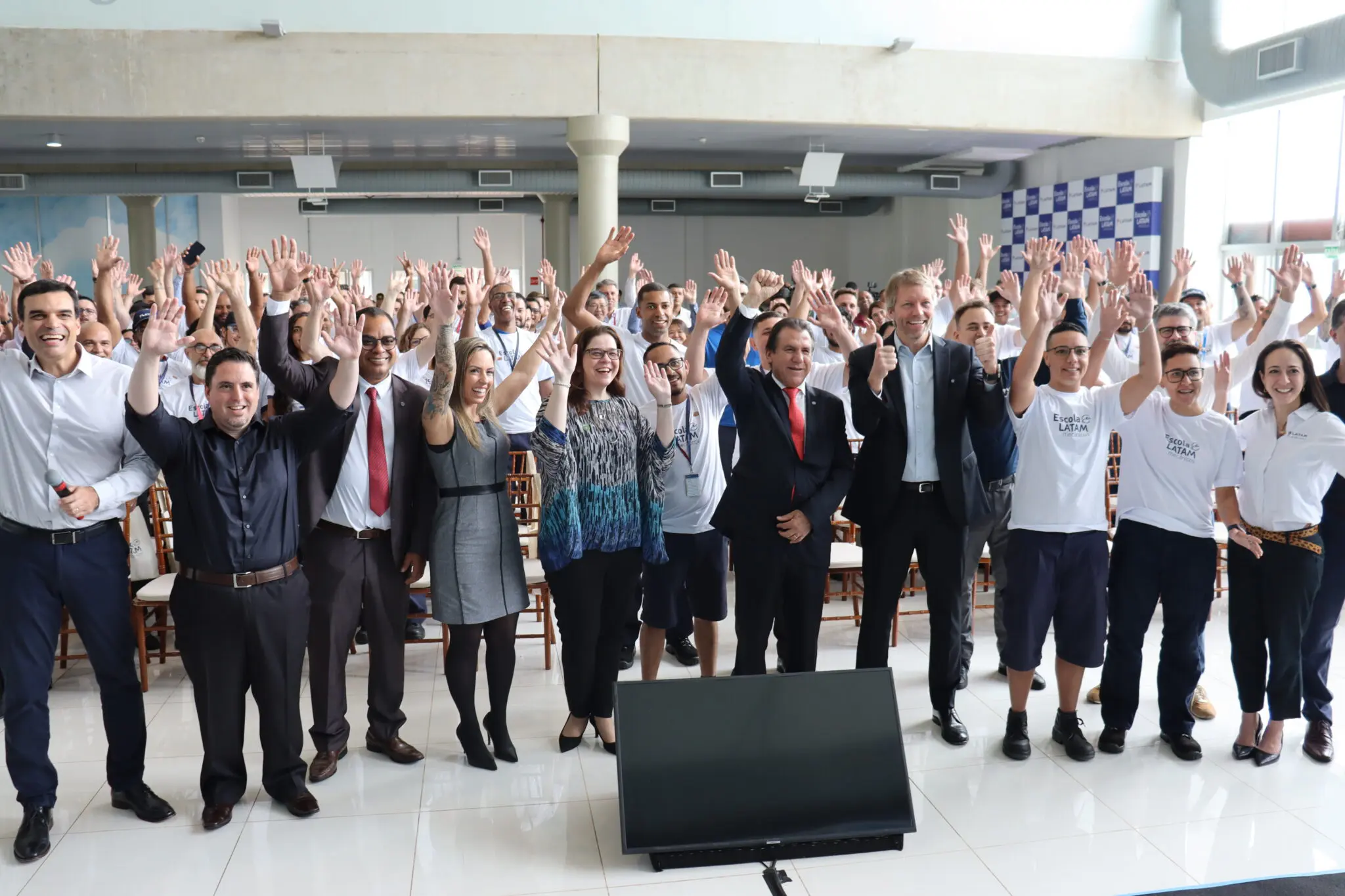 São Carlos (SP) – Nesta terça-feira (10), a Latam promoveu um evento para anunciar a inauguração da Escola Latam. Em São Carlos, no hangar da empresa, o evento contou com a presença de , Luiz Marinho, ministro do Trabalho e Emprego e Jerome Cadier, CEO Latam Brasil. A escola é única no pais vinculada a uma companhia aérea e certificada pela Anac. Os 70 funcionários bolsistas da primeira turma do projeto estiveram no evento de lançamento. Tatielle da Silva Santos foi chamada ao palco para representar os alunos e falou da satisfação de estar no projeto.