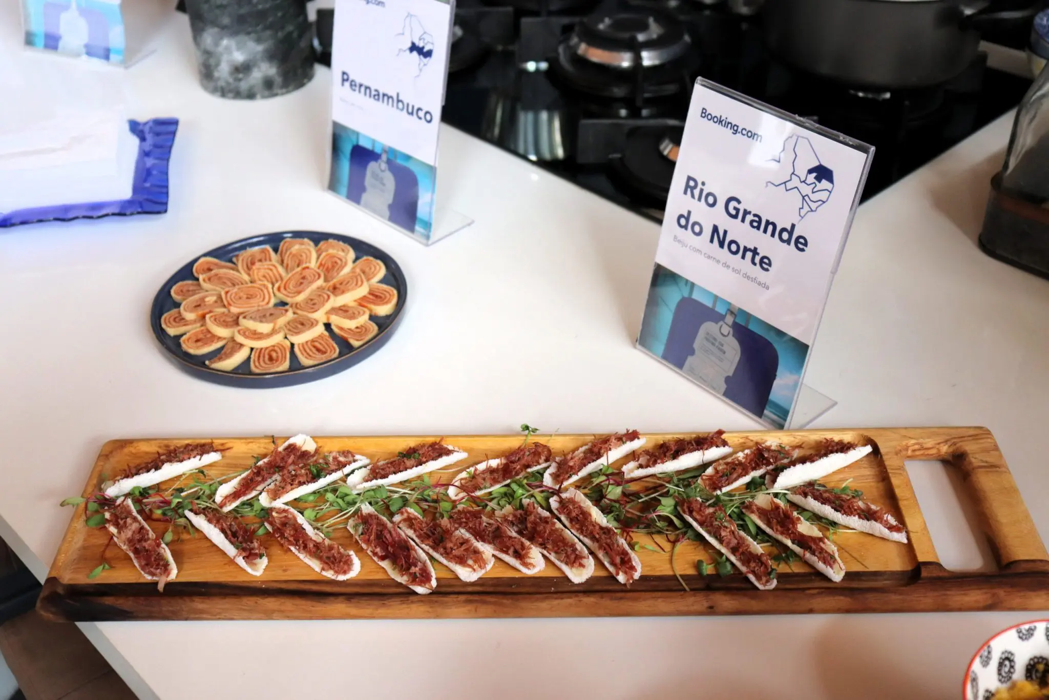 Além da apresentação dos dados, os convidados puderam vivenciar aspectos culturais e gastronômicos desses locais. O historiador Gustavo Bronze detalhou o contexto histórico de cada destino, enquanto a degustação incluiu pratos típicos, como beiju com carne de sol (Nísia Floresta), doce de abóbora com coco (Camaçari), pão de queijo (Córrego do Bom Jesus), cuscuz com molho de salsicha (Passo de Camaragibe) e bolo de rolo (Praia dos Carneiros). “A ideia é que os participantes se sintam nesses destinos por meio dos sabores, aromas e texturas”, explicou Bronze.