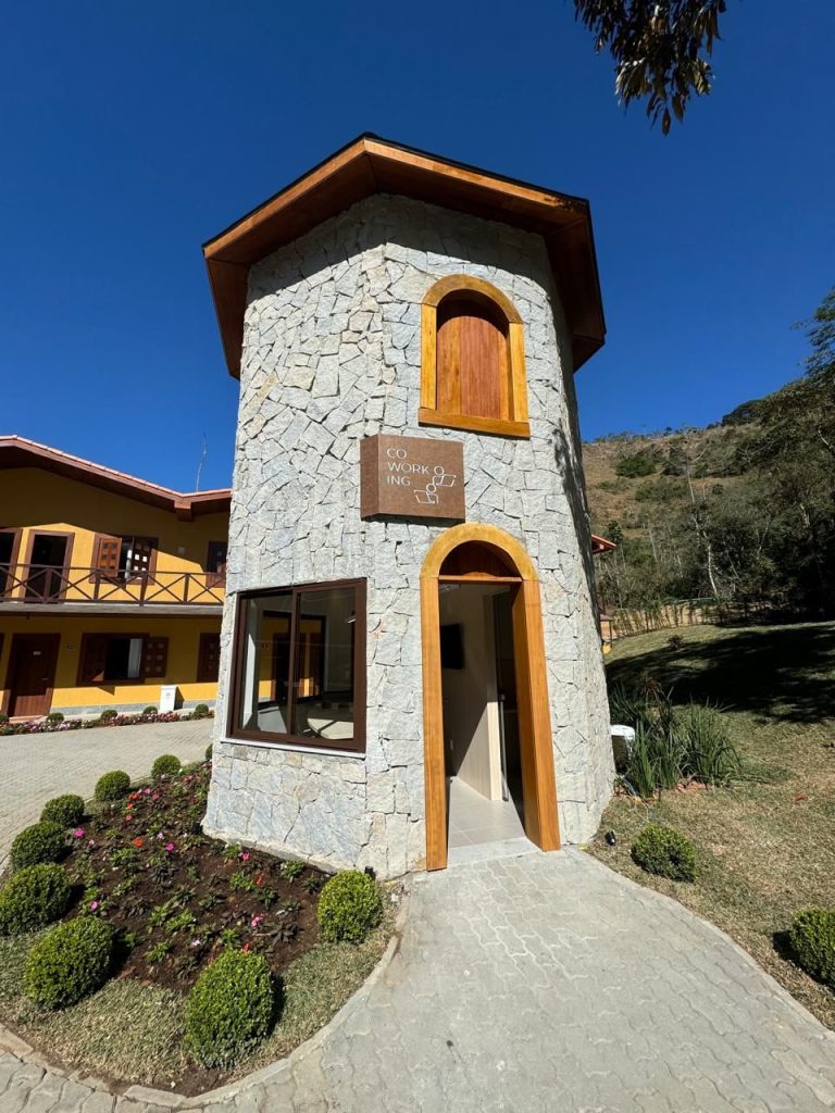 O novo espaço de coworking foi instalado na área recentemente ampliada do hotel, onde, no fim de 2024, foram inaugurados 26 novos apartamentos. O ambiente conta com uma sala individual e outra compartilhada, equipada com quatro lugares, e está localizado em uma charmosa edificação de pedra em formato de torre. O funcionamento será diário, das 8h às 19h, por ordem de chegada.