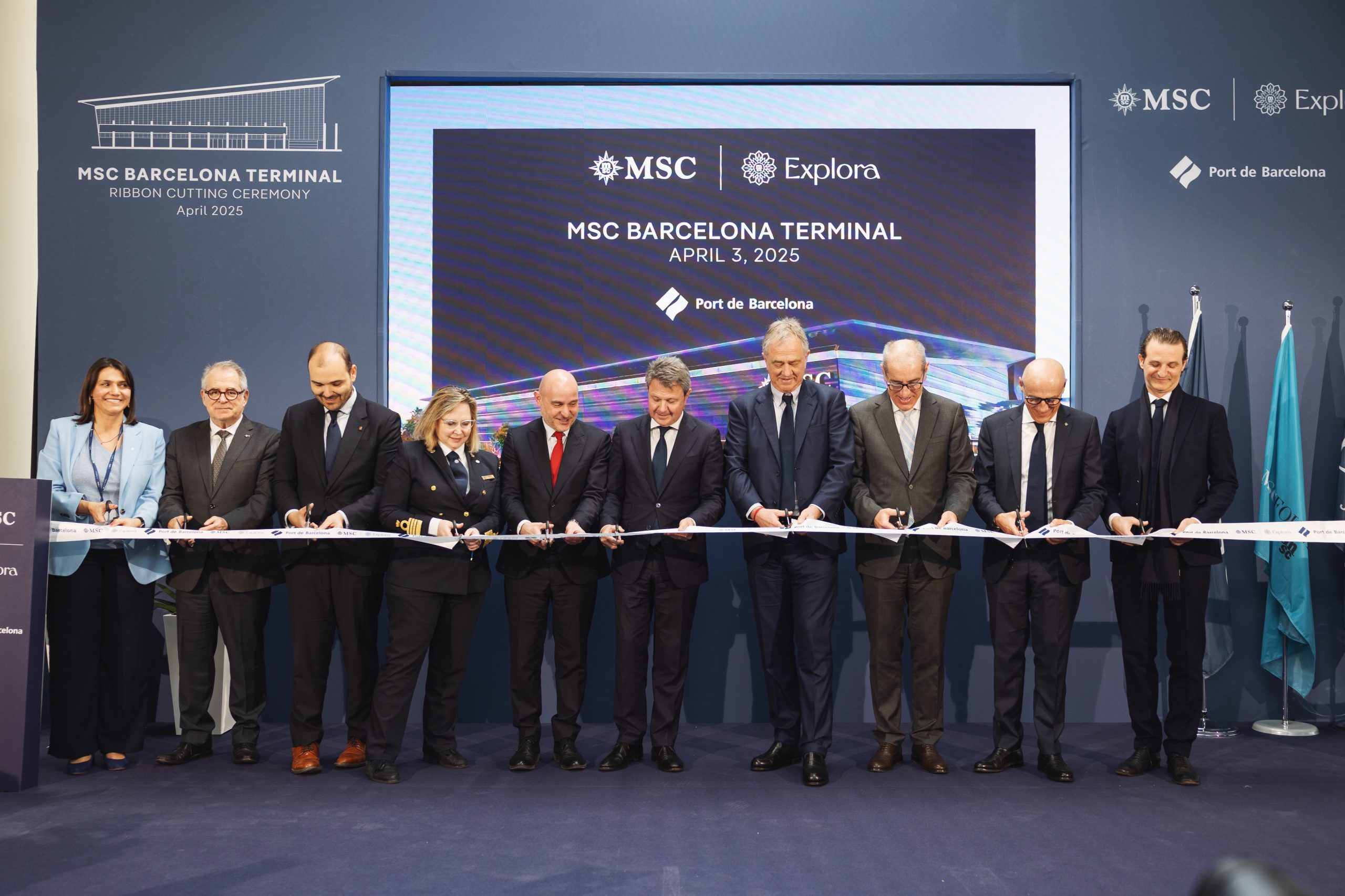 Entre as autoridades presentes na cerimônia de corte da fita estavam Jose Antonio Santano Clavero, secretário de Estado de Transportes e Mobilidade Sustentável do governo espanhol; Carlos Prieto, delegado do Governo Central; Jordi Valls, vereador e vice-prefeito de Economia, Finanças, Promoção Econômica e Turismo da Câmara Municipal de Barcelona; Albert Dalmau, ministro da Presidência do Governo da Catalunha e José Alberto Carbonell, Presidente do Porto de Barcelona, juntamente com Pierfrancesco Vago, presidente executivo da Divisão de Cruzeiros do Grupo MSC, Gianluca Suprani, vice-presidente sênior de desenvolvimentos de Portos da MSC Cruzeiros; e Anna Nash, presidente global da Explora Journeys.