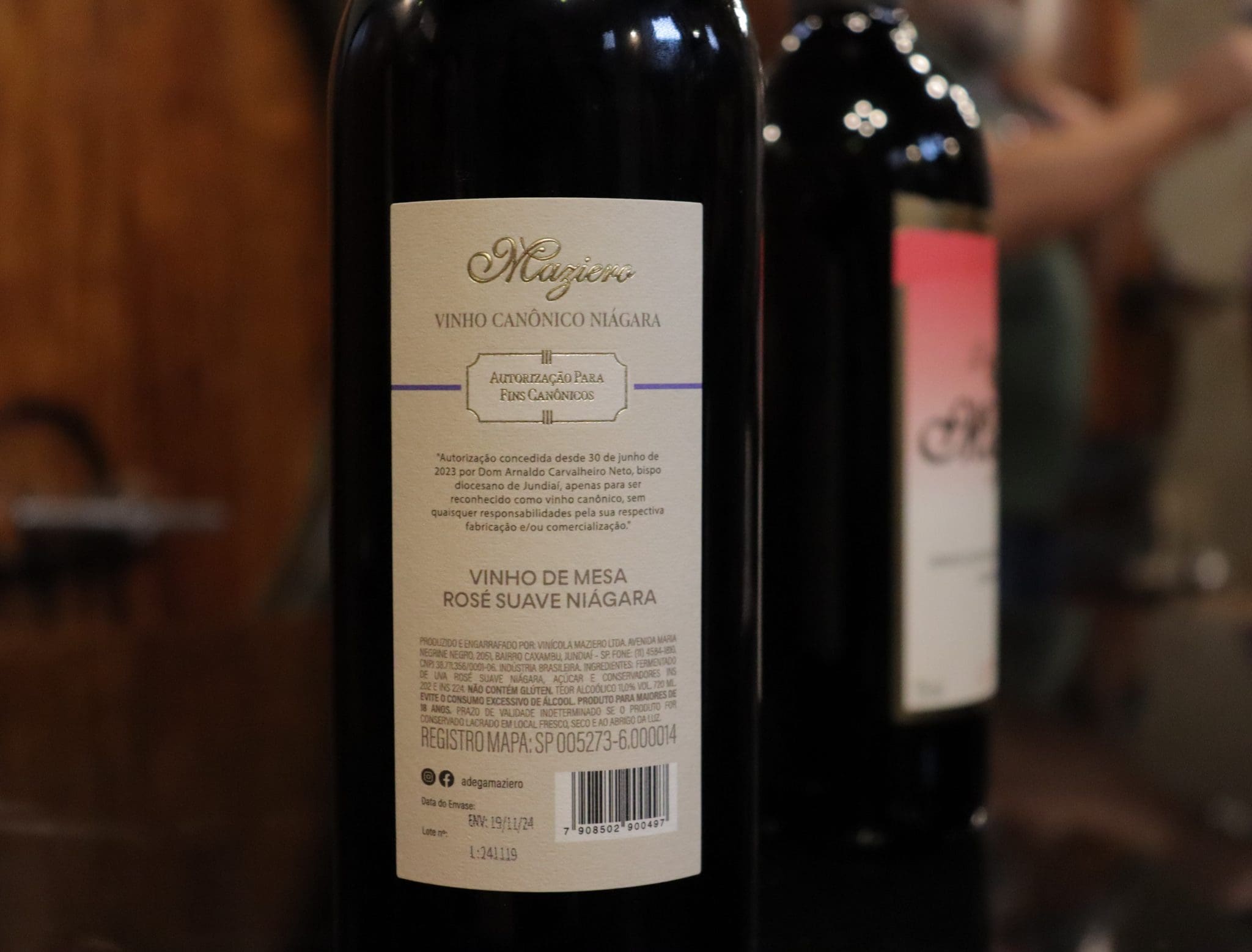 Produzido há décadas pela família Maziero, em Jundiaí (SP), o vinho tinto suave elaborado com uvas Niágara Rosada conquistou em 2023 um reconhecimento singular: foi oficialmente certificado como vinho canônico pela Diocese de Jundiaí, tornando-se apto para celebrações litúrgicas da Igreja Católica. O título, obtido após criteriosa análise laboratorial e inspeção na estrutura da vinícola, reforça a importância do produto não apenas para a fé, mas também para o turismo local.