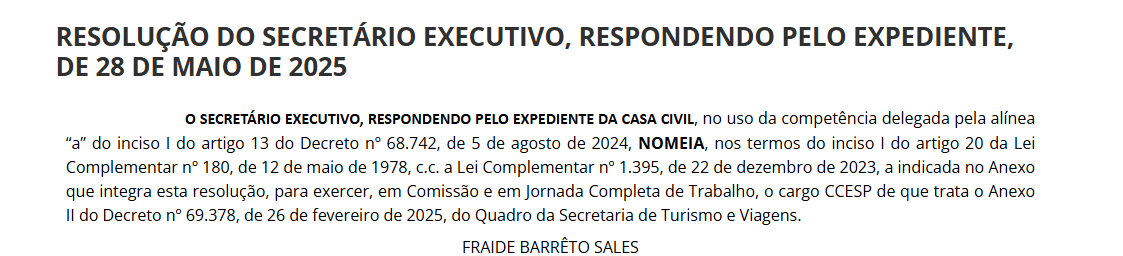 Confira abaixo a nomeação publicada no Diário Oficial desta sexta-feira (30):